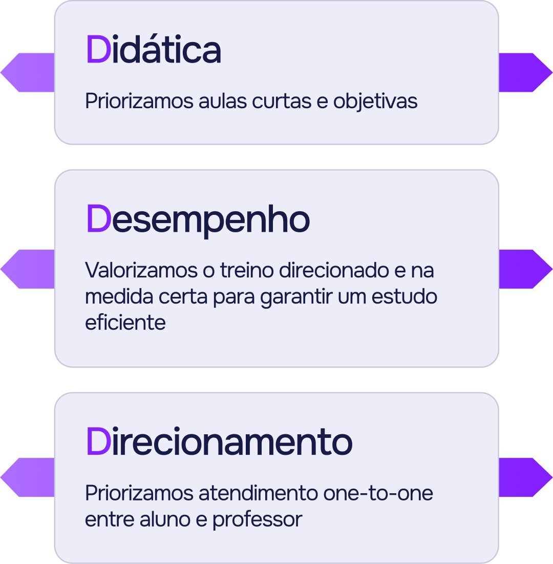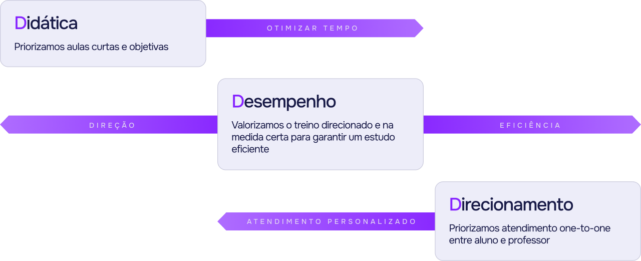 Todos os nossos cursos são produzidos a partir do Método 3D (Didática, Desempenho e Direcionamento). Dessa forma, sua experiência não só vai garantir sua aprovação, mas um aprendizado sólido e duradouro.